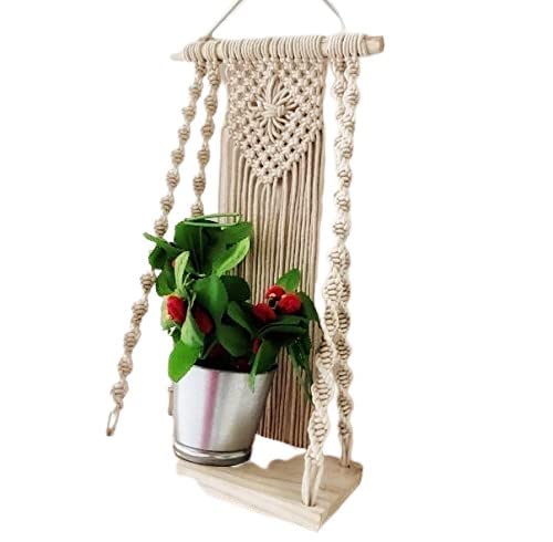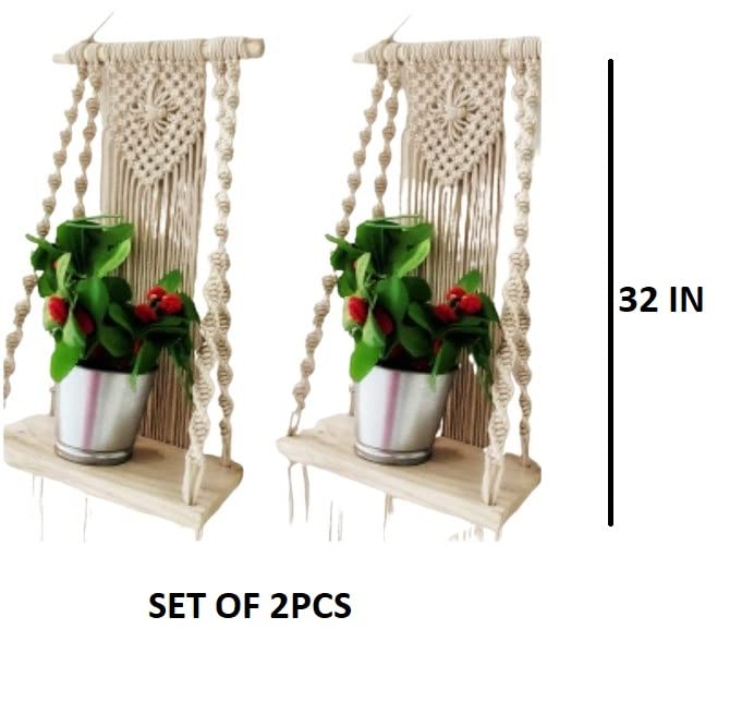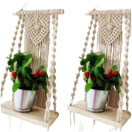 DXYZ Macrame Handmade Wooden Wall Shelf | Bohemian Wall Shelf for Living Room Bed Room (Set of 2 - Twisted)