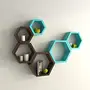 Hexagon Shape Set of 6 Floating Wall Shelves (Blue & Brown)