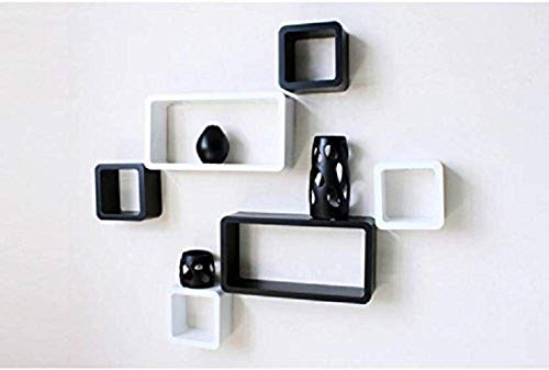 MDF Cube and Rectangle Wall Shelf -Set of 6 Black & White