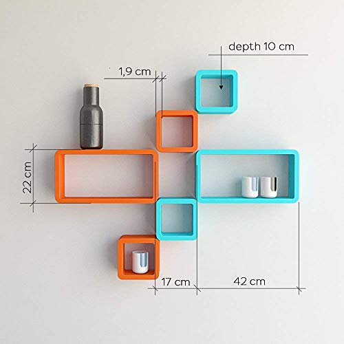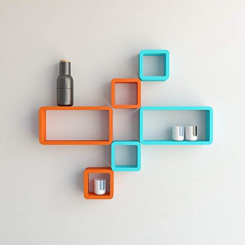 MDF Cube and Rectangle Wall Shelf -Set of 6 Blue & Orange