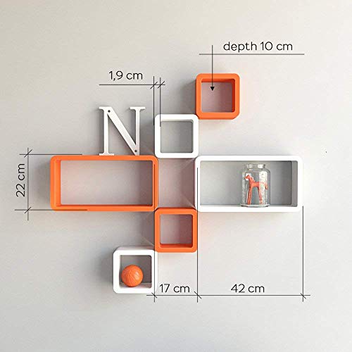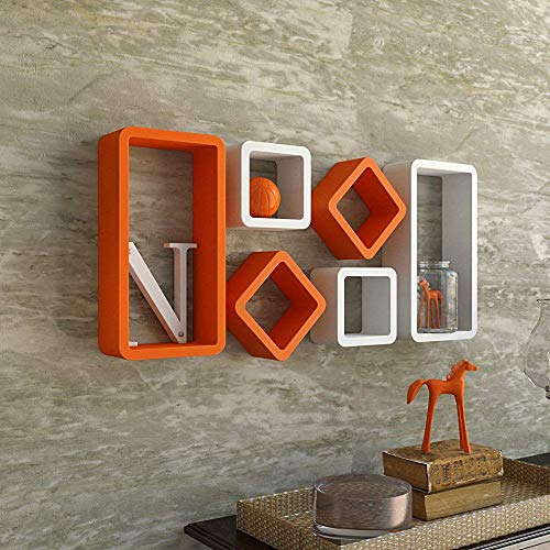 MDF Cube and Rectangle Wall Shelf -Set of 6 Orange & White
