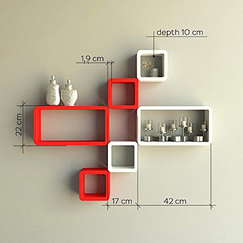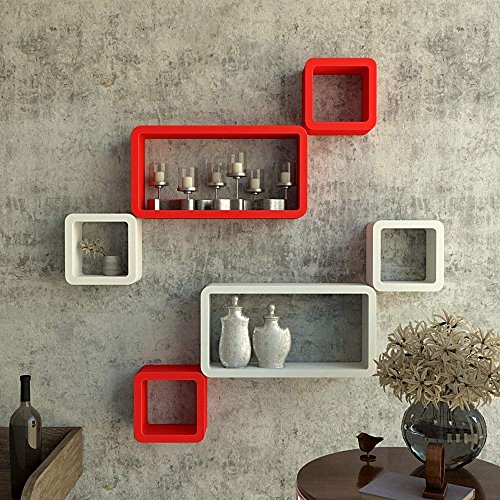 MDF Cube and Rectangle Wall Shelf -Set of 6 Red & White