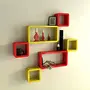 MDF Cube and Rectangle Wall Shelf -Set of 6 Yellow & Red