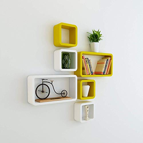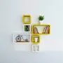 MDF Cube and Rectangle Wall Shelf -Set of 6 Yellow & White