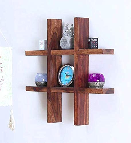 Craftatoz Sheesham Wood Wall Mounted Shelf for Home (Natural Finish)
