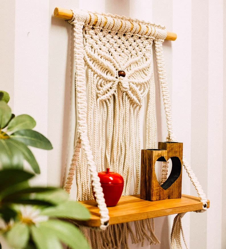 The Decor Hub is one of the fastest-growing brand in the field of exports. We deal in products with a wide variety of work where unique and decorative objects are made completely by one's hand or by using simple non-automated related tools like scissors carving implements or hooks used fo furnishing home decoration wall decoration and furniture. Our all products are handcrafted by Indian Artisians. This boho style wall hanging shelf is made with natural materials to give people a minimalist feeling and create a relaxing ambiance indoors. Wooden Shelf: This wall hanging shelf can display your favorite succulents plants candles pictures books personal collections and other common items. Provide Ample Storage Space: This wall hanging shelf is great for storing magazines flower pots and bookshelves thus perfecting you decor. You can just hang it on the bedside wall or narrow wall the wall above the sofa or window. With the shelf your plants can have added ample storage space.