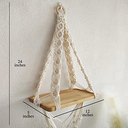 This boho macrame wall hanging book shelf is very unique & elegant and lovingly handmade from 100% natural cotton macrame twisted thread. We use imported pine wood to make the shelf. This wall hanging boho decor shelf is strong durable and beautiful. It is lightweight and easy to hang. This wooden wall hanging floating shelf is great for bedroom decoration living area baby nursery workspace or anywhere where youd like to bring some texture and interest to your walls. Perfect wall decor macrame tapestries.