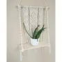 The rustic wood shelves are linked by macrame cotton ropes woven by Indian Artisans carefully. This elegant macrame wall decor Shelf is made of cotton cord without artificial ingredients or chemicals. Sturdy and durable. The wall art decor creates a sense of harmony and comfort in your room. It will be a beautiful and practical gift for your family or friends to fit any occasion especially House warming baby shower Mothers Day or the Holidays also great for birthdays weddings Diwali Christmas and more. A simple nail or a hook is enough to hang it on the wall. Size: 40.64cmL x 60.96cmH x 12.7cmDepth. Placement of Living Room Bedroom Office Balcony Nursery Kitchen Bathroom