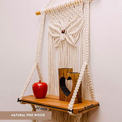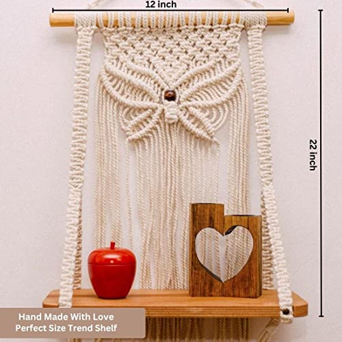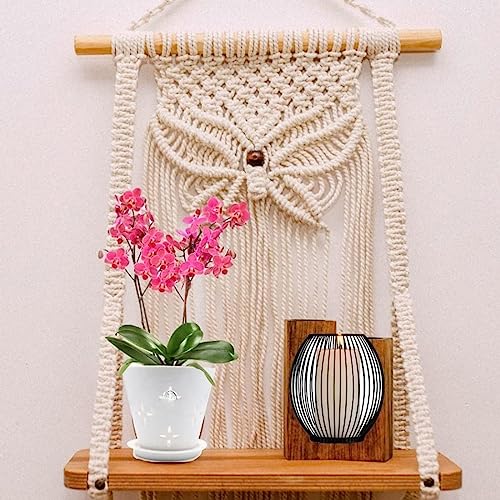 This Macrame Shelf Wall Hanging with its compact size and decorative functionality is a delightful addition to any space bringing a boho vibe and a touch of nature indoors. Adds a touch of bohemian charm and texture to your living space