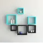 Wall Mount Shelves Square Shape Set of 6 Wall Shelves - Black & Sky Blue