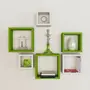 Wall Mount Shelves Square Shape Set of 6 Wall Shelves -Green & White
