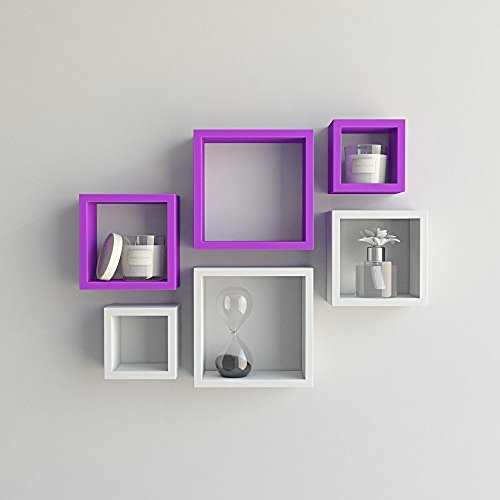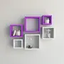Wall Mount Shelves Square Shape Set of 6 Wall Shelves - White & Purple