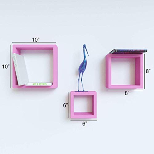 Wall Shelf Rack Nesting Square Wall Shelves Pack of 3 -Pink
