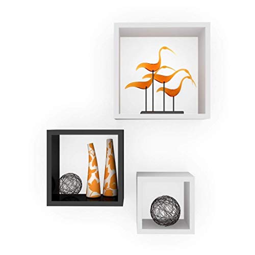 Wall Shelf Rack Nesting Square Wall Shelves Pack of 3 -White & Black
