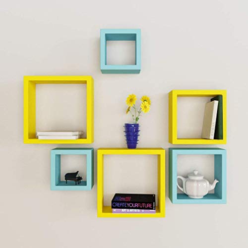 Wall Shelf Rack Nesting Square Wall Shelves Pack of 6-Yellow & Sky Blue