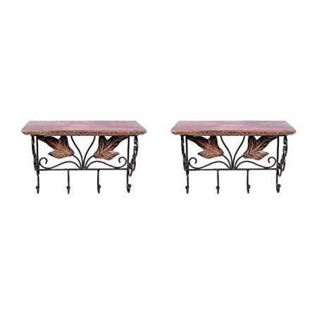 Wooden & Wrought Iron Wall Bracket | Book Rack | Cloth Hanger Set of 2