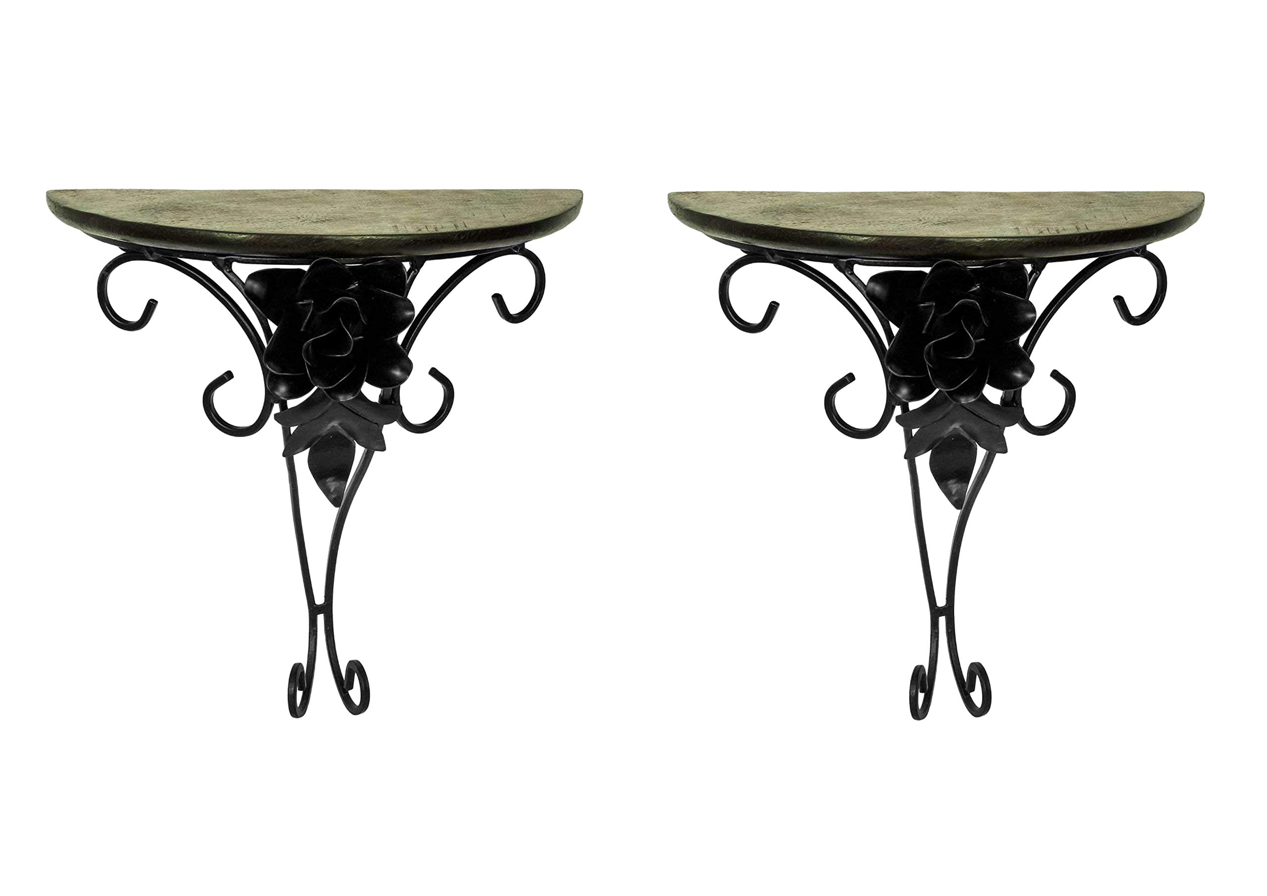 WROUGHT IRON CRAFTS Handcrafted Flower Design Wooden Wall Bracket Combo for Living Room