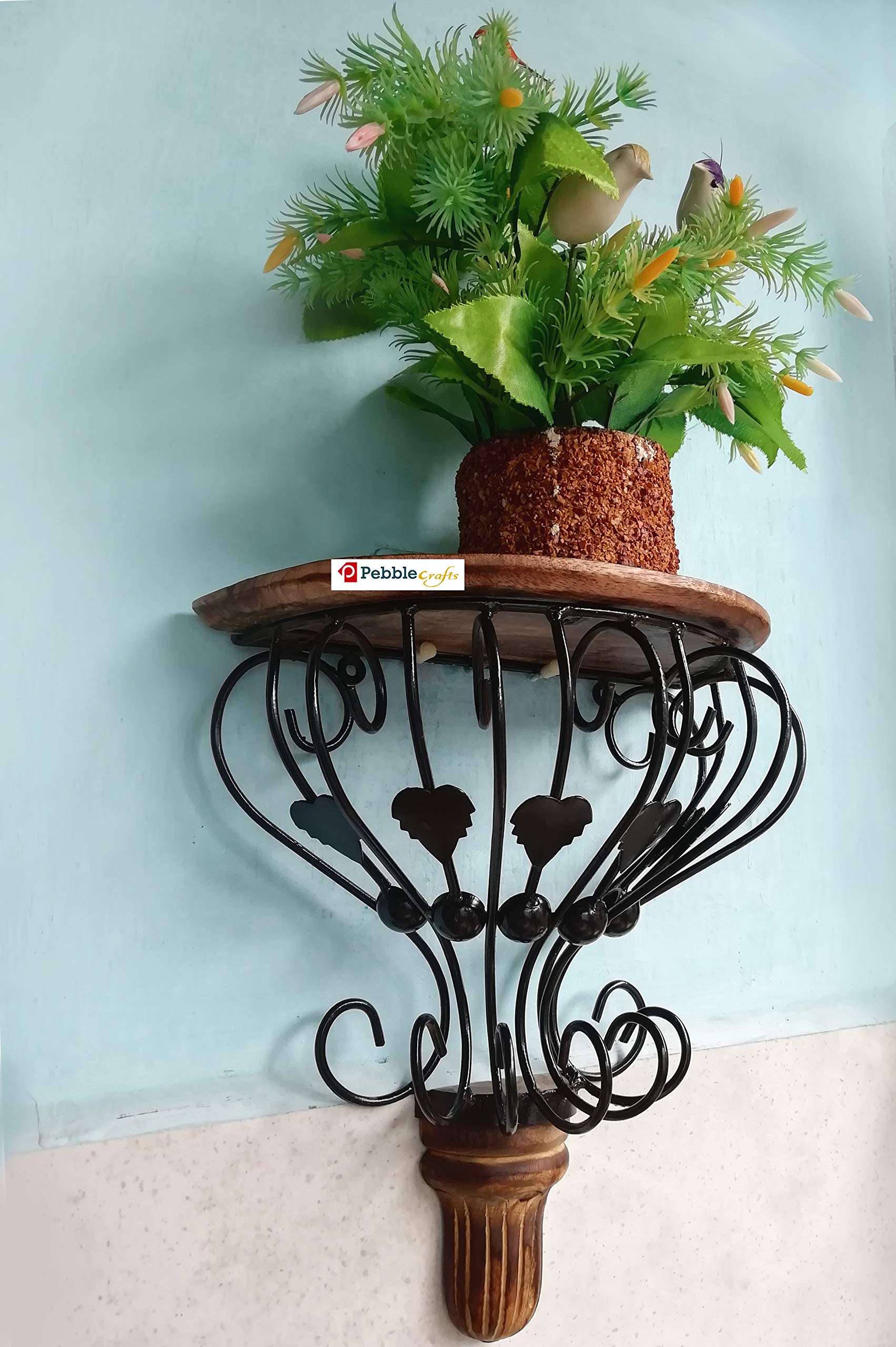 This wood hanging shelf can be incorporated easily into any spaces expand more storage space in your home practicial use and adds modern flair. Display your books lovely plants or candle or coffee cups bedrooms for photo frames and mementos. This wall bracket is a perfect storage and decorate shelf for many rooms in the home. Living room for organize your books lovely plants or candlebedrooms for display photo frames and mementos. Materal- wrought iron.The wooden base is 15 cm in radius Add extra storage and display favourite photos and decor with functional wall shelves.Shelf organizers are perfect for entryways bathrooms and kids' rooms. This ledge goes well with any decor be it modern rustic or contemporary.