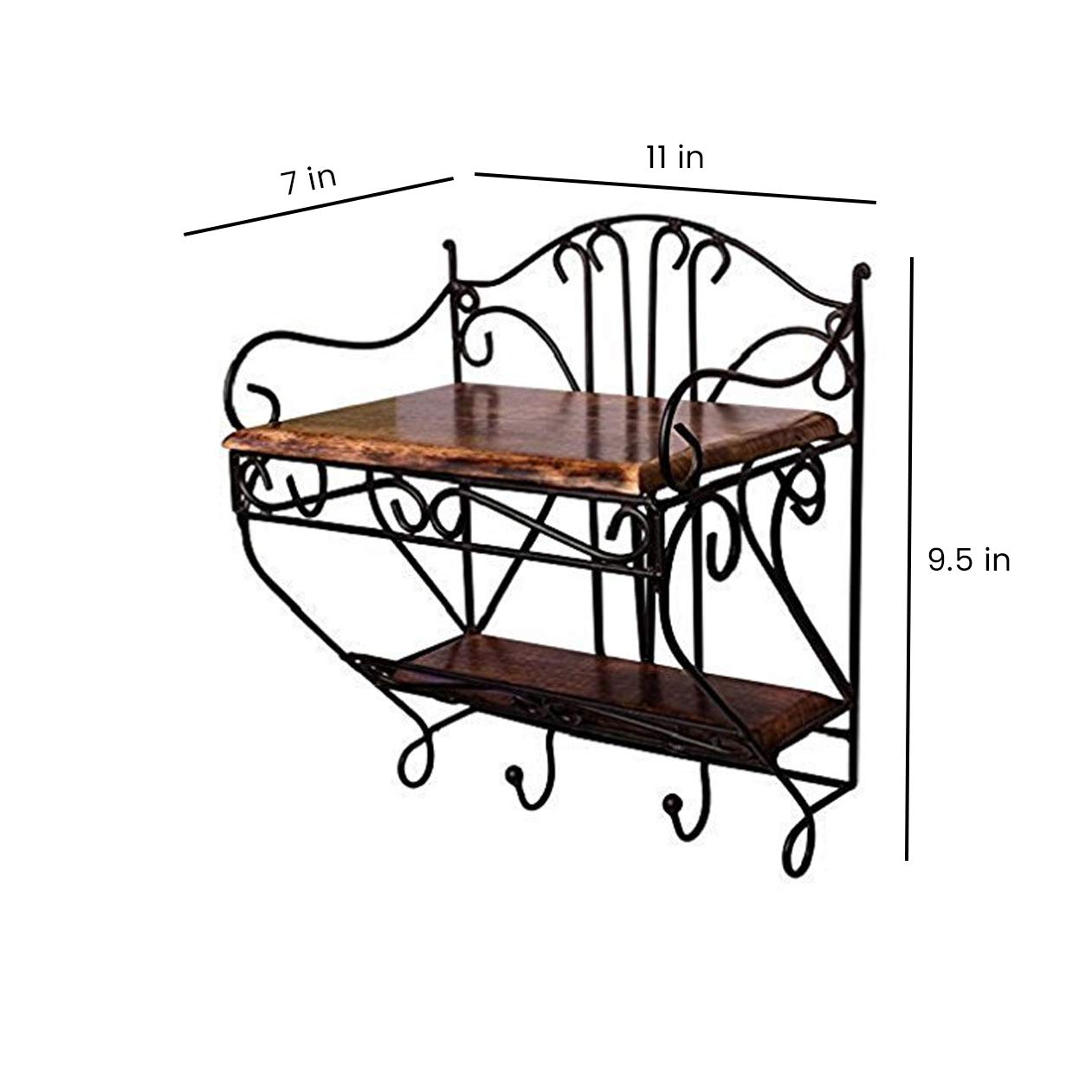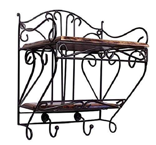 HomeHomeWall AccentsShelvesWROUGHT IRON CRAFTS Wooden and Wrought Iron Set Top Box Wall Shelf/Stand Wood Multipurpose Holder for Cable WiFi Router Wall Mounted RackDouble Shelves