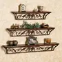 WROUGHT IRON CRAFTS Wooden Rack Shelf Pot Stand Wall Mount Shelves (Set of 3)