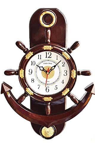 Click n ship Pendulum Wall clock Built in the traditional style this beautifully crafted clock is 1 of the design in sensational wall clock range.Click n ship gives you an ideal combination of functionality and stylishness. If you are someone who is seeking a high quality and stunning wall clock for your home or office then this is an ideal pick for your home. Click n ship provide durable wall clock can be a perfect fit for your living room bedroom or kitchen. It can also be perfect gift for your colleagues and family friends during marriages and house warming ceremonies. This clock will definitely give royal look to your home/office decor sure to be admired by your guests. These non ticking wall clocks will undoubtedly adorn your home and make it stand out from the rests. Best Diwali Gift items for your staff members family members friends relatives etc. A classic ship steering alike designed wall clock with pendulum that would add to the decor of your house. Care Instruction:- Don't wash use dry or wet cotton cloth to remove dirt. Product Color - Brown Material- Plastic Quality-Premium Quality. Design is unique. MADE IN INDIA