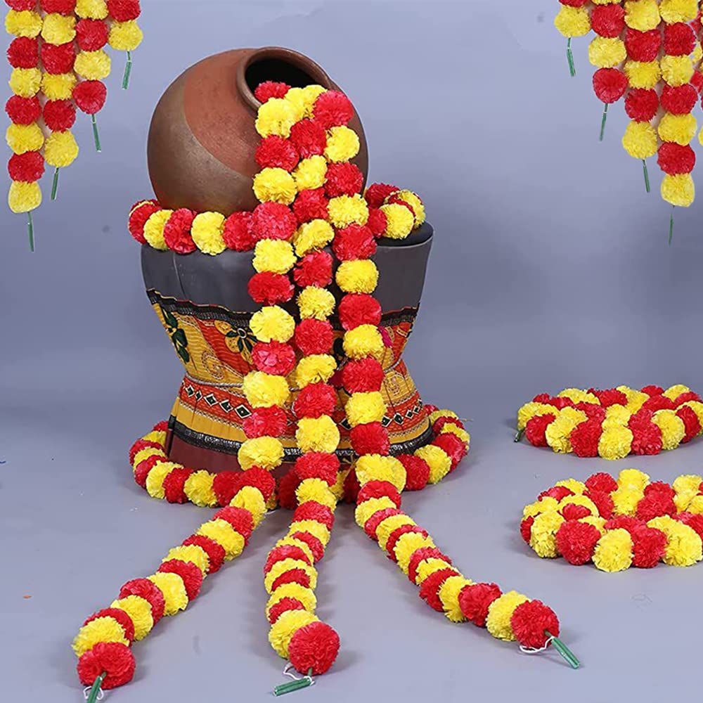 • Pack of 5 Pieces of Artificial Marigold Fluffy flowers Garlands for decoration