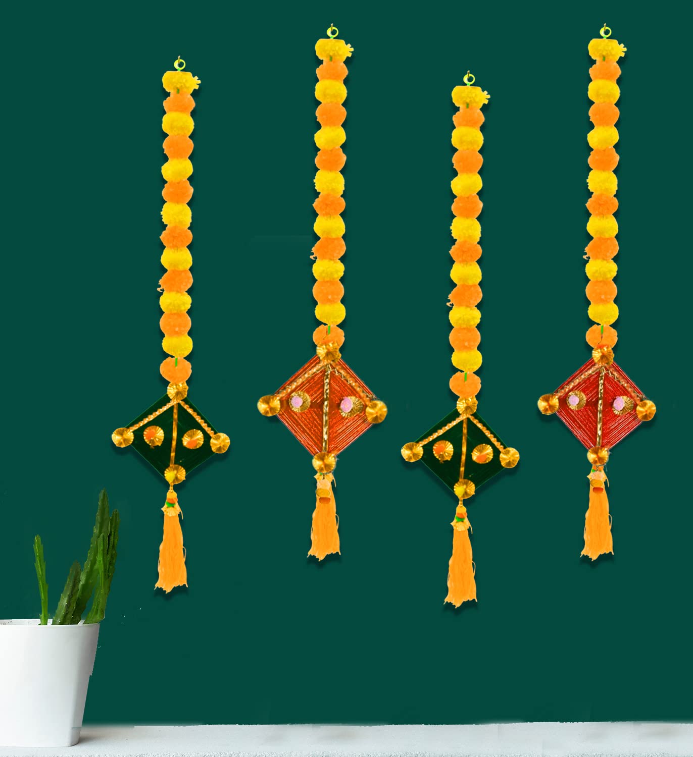 Wall hangings are used to decorate the entrances of the house. The beautiful door hangings have special significance as the decoration accessories. Wall Hanging is the first thing that welcomes your guests as they step at your place. It not only enhances the charm of the entrance of your house but also gives a friendly welcome to the guests. Very Useful for Marriage Wedding Mehendi Haldi Decoration Items for Marriage Ceremony Lohri Pongal Decorations for Home. Dimension are :- 25 CM (L) x 5 CM (W) x 107 CM (H) | Weight :- 30gm (Each) | Color :- Multicolor | Material :- Multiple Colorful Pom Pom & Golden Beads. In the Box : 4 Pcs Handmade Pom Pom Kites Wall Hanging