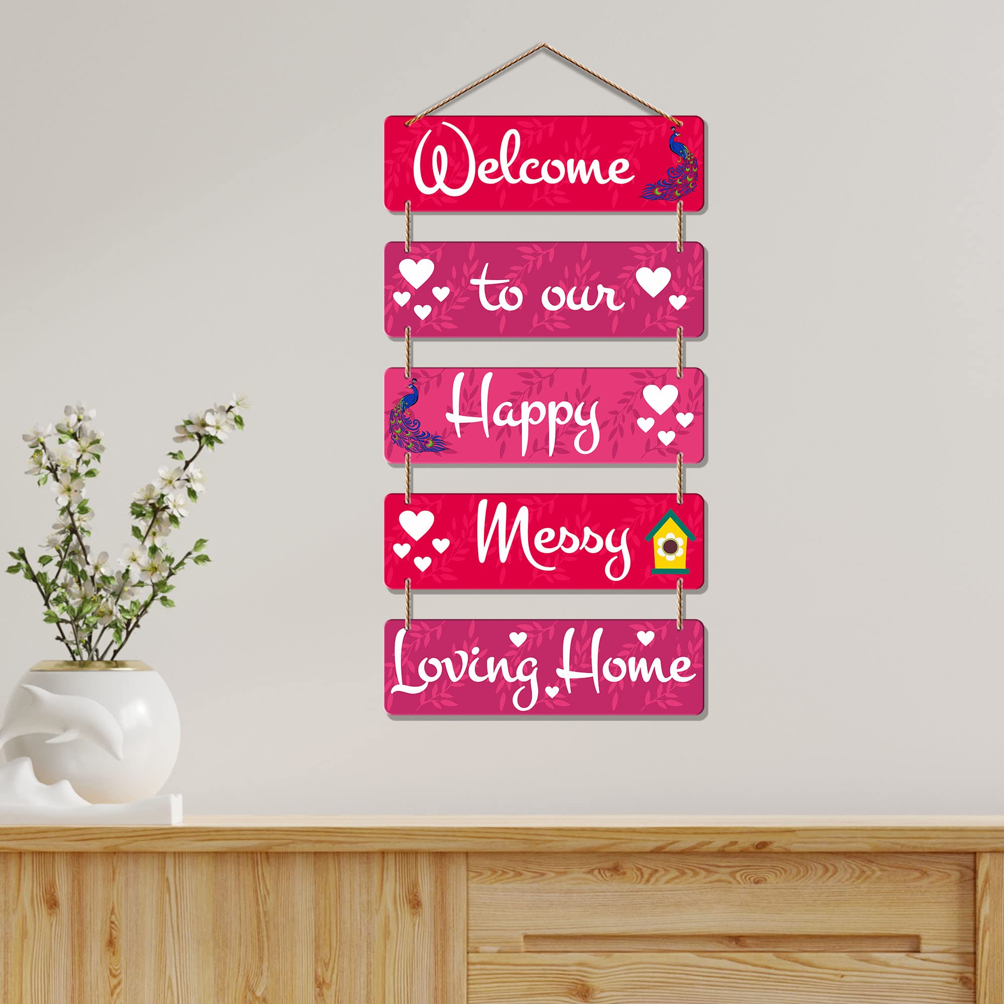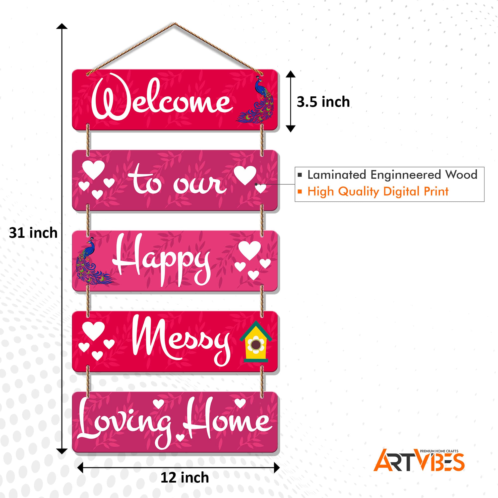 Artvibes Welcome Home Quote Decorative Wall Art MDF Wooden Wall Hanger for Living Room | Bedroom | Gifts | Decorative Items for Home | Artworks Wall Hangings Ornaments (WH_6201N) (Multi 1)