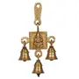This Ganesh Bell hangs from brass hooks This Bell can be used outdoors or indoors so you can let the wind resonate the bell. It is made out of brass with an antique finish applied.Such bells can also be hanged at home and ringing of bells removes negative energy and brings positive energy at home.These brass bells and plate are hand crafted using sand casting. A wax/sand model is prepared for the desired object. Several clay coatings are given to this model to make a mould. Molten is evenly poured in a thin stream into the mould. On breaking the mould the metal object is taken out. Details are worked out to give it a finishing touch. Finally the item is cleaned and polished. Note : All pieces are handcrafted so minor variation in size t shape color may be considered as uniqueness of the product.