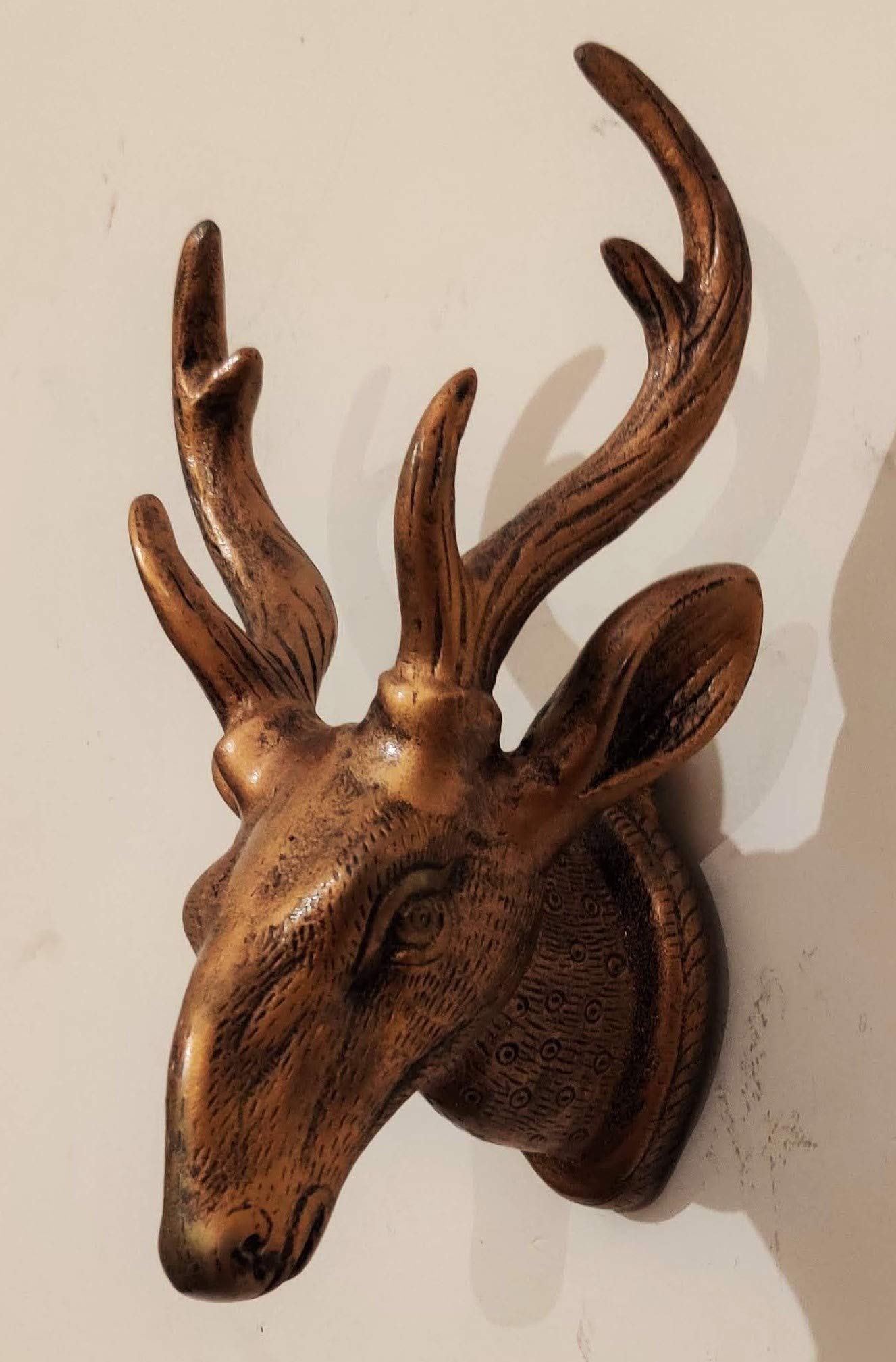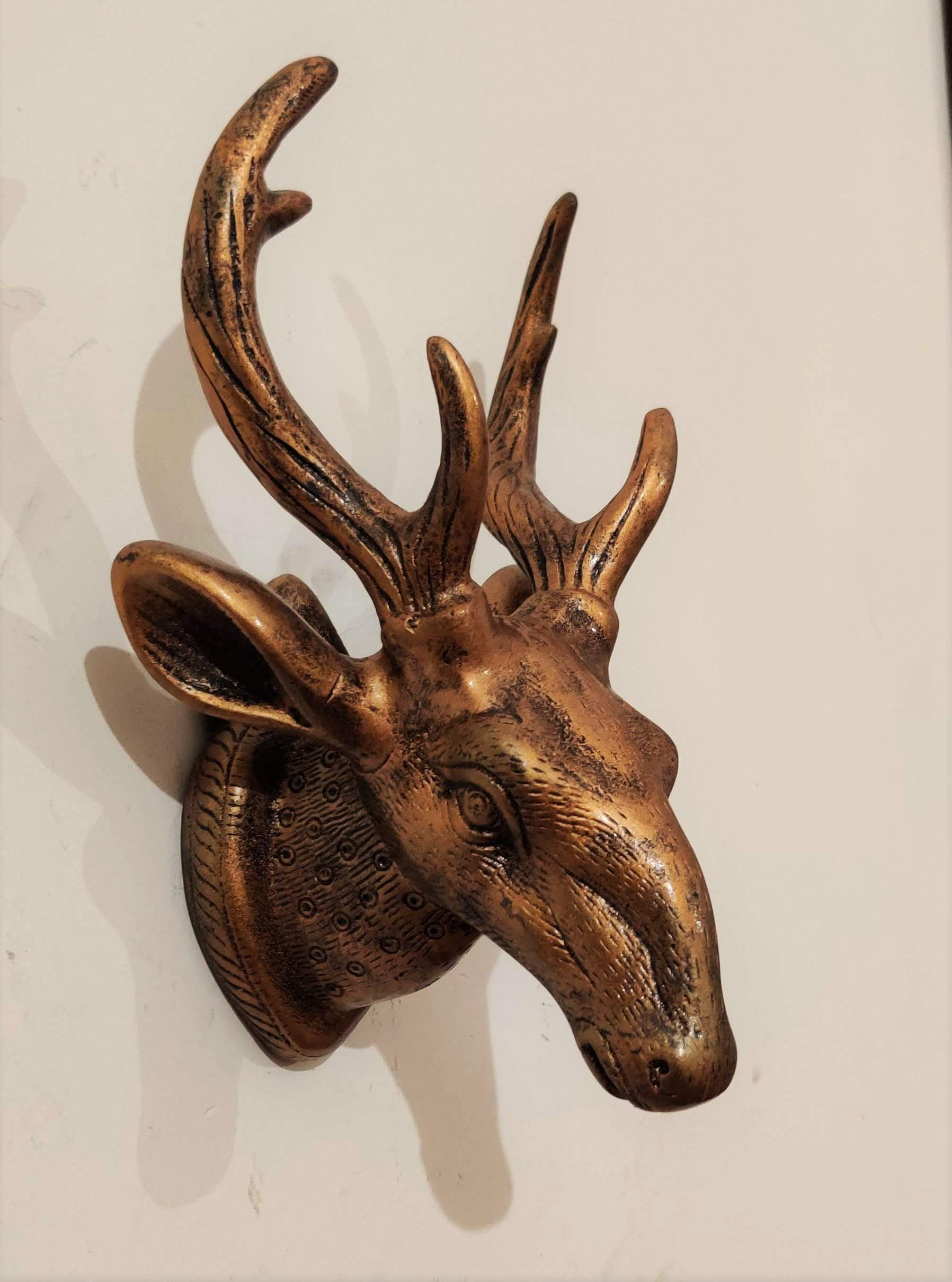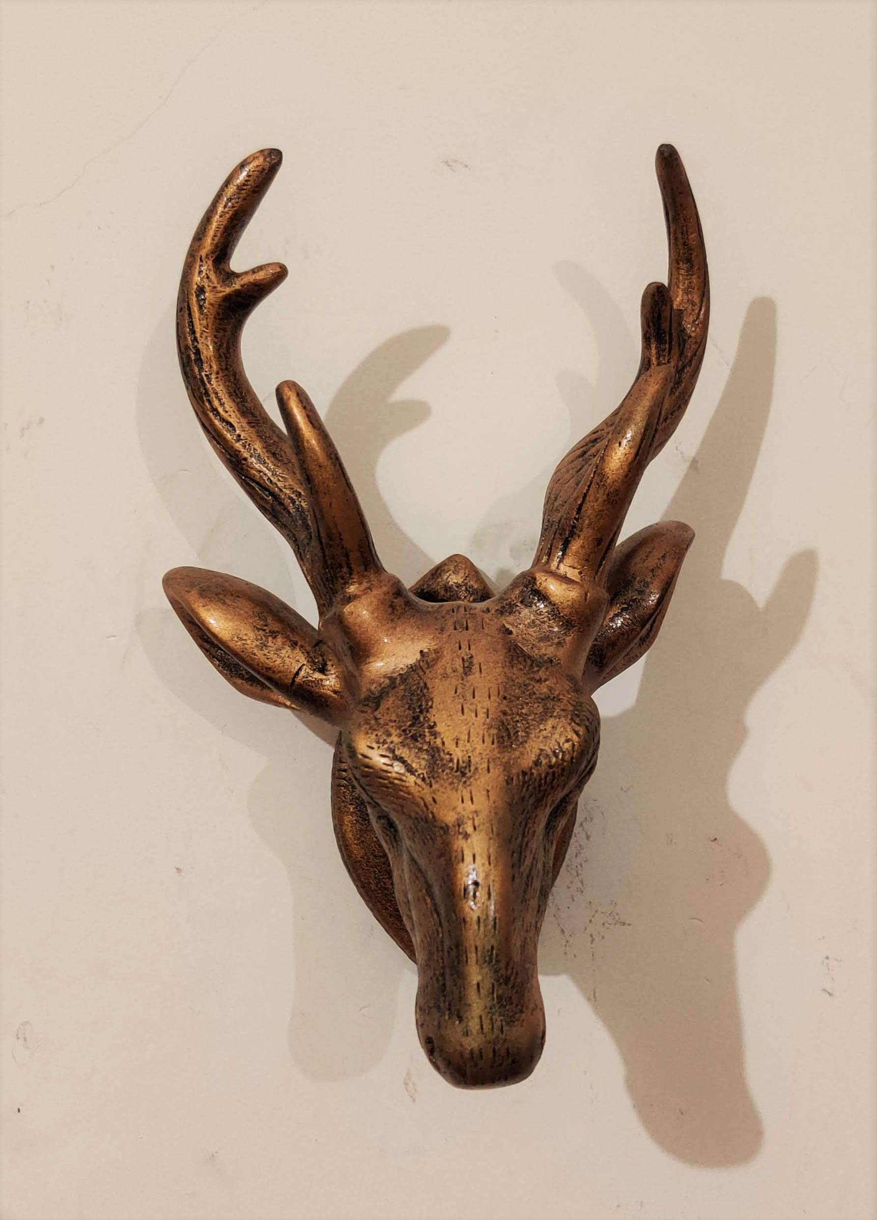BRASS CRAFTS Brass Metal Deer Head Showpiece Deer Head Wall Hanging Living Room Decorative Wall dcor; Metal Wall hanging showpiece(L*B*H - 15CM*13CM*24CM) Weight: 820GR