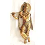 BRASS CRAFTS Metal Alluminum Lord Krishna Wall Dcor Hanging Statue Size(L*B*H - 29CM*2CM*52CM) Weight: 980GR Brass- Gold Antique 1 piece