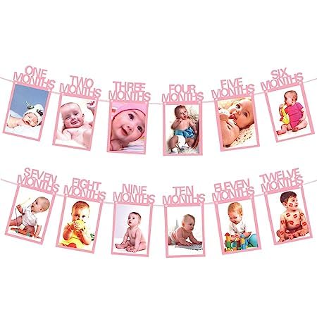 Pop The Party Photo Banner for First Birthday/First Year Birthday Photo Banner/Monthly Photo Banner (12 Months) Pink