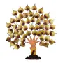 A serene and divine Buddha image is finely carved on metallic leaf tree. The Buddha is believed to be a bringer of good luck health wealth happiness and prosperity. Many Thai people and Buddhist followers keep a similar image in their home as an amulet against evil spirits. Our Indian artisan works with chisel and knife to achieve the fine detail of this splendid piece and finishes the metallic surface with exquisite detail. At more than 94cm long and nearly 68cm wide this hanging piece is large enough to use as an accent piece on walls near tables and chairs and as hallway decoration.