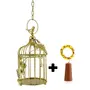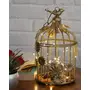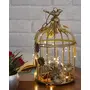 Homesake Modern Style Iron Decorative Bird Cage with Hanging Chain Cork String Light Tabletop or Hanging Tealight Holder Candle Holder (Small Golden)