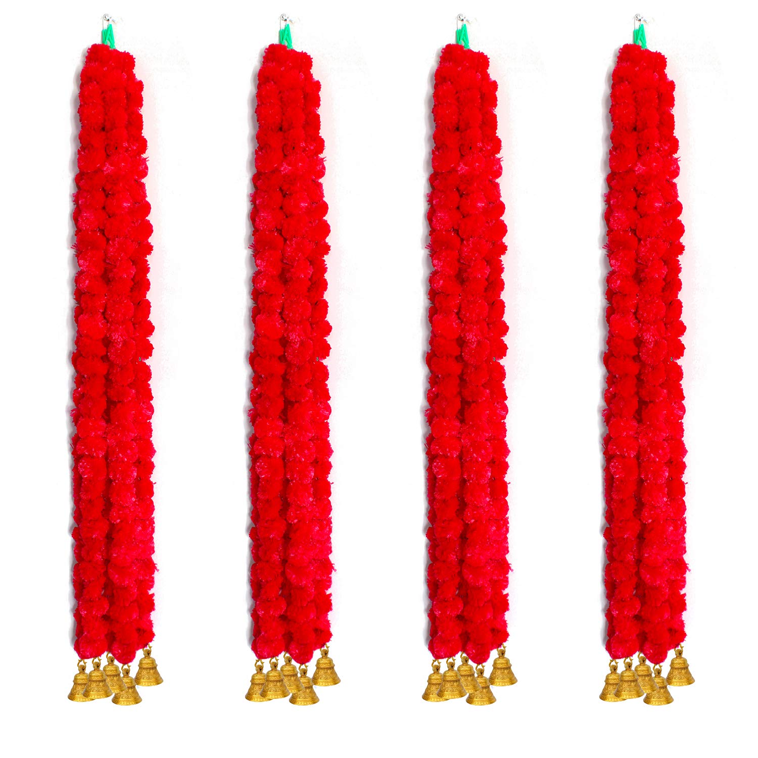 HomeHomeWall AccentsHangingiHandikart Handmade Decorative Marigold Artificial Fluffy Garland with Bell in The Bottom Size 60x2.5 inches Used for Office Home Diwali Decoration| Red Colour (Pack of 20)