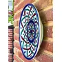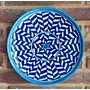 KHURJA POTTERY Blue Decorative Hanging Plate Ceramic Maze Design Wall Art 8 inches Handmade Blue Pottery by Awarded Artisan