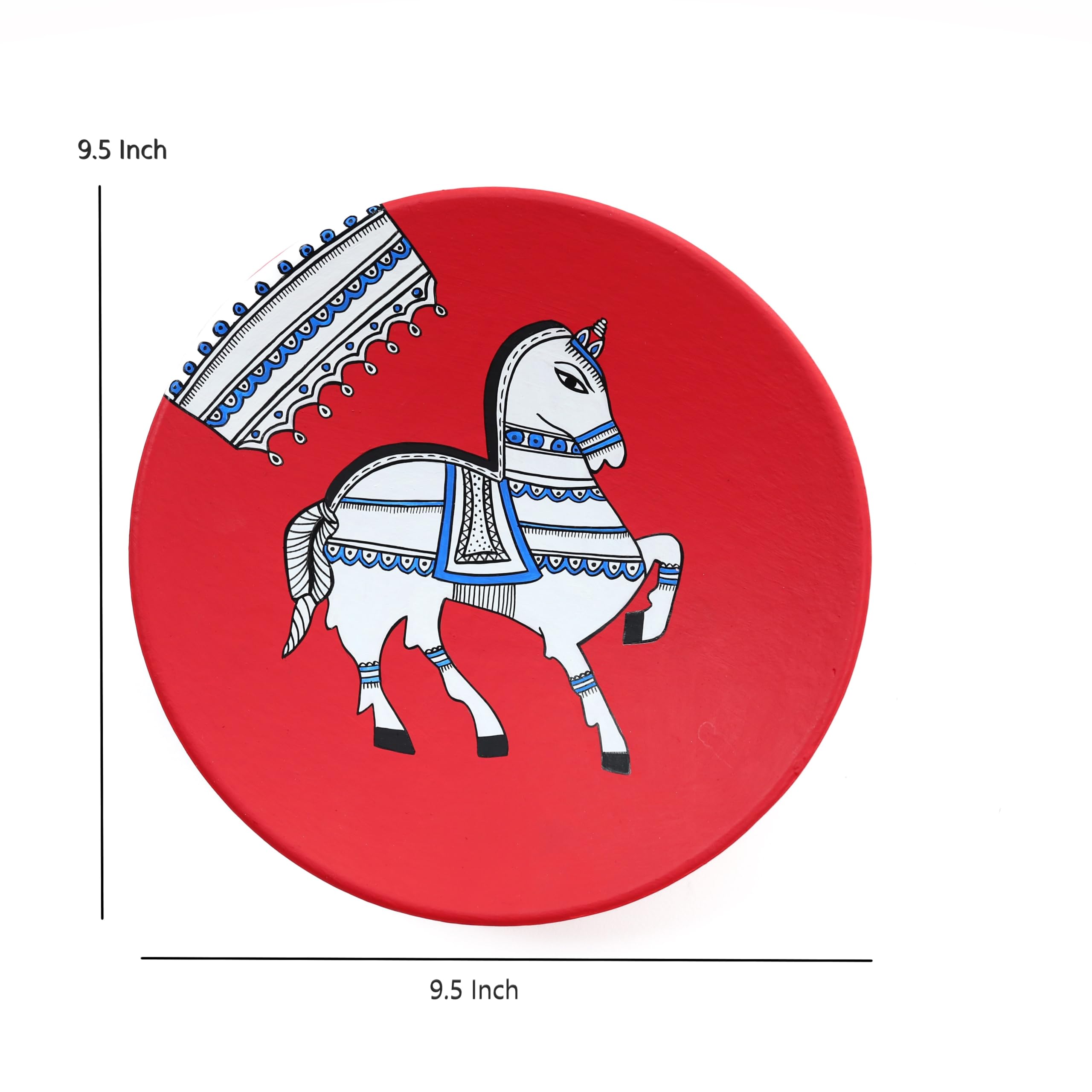 Elevate your living space with the beauty and grace of a hand-painted dancing horse in vibrant red on a complementary red background. Our Terracotta Hand-Painted Wall Plate is an exquisite piece of art that adds an aura of power and elegance to any room. Make this captivating wall plate a centerpiece of your decor and experience the magic of artisanal craftsmanship. Order now to infuse your space with the allure of this remarkable piece. Our Terracotta Wall Decorative Plates are not just pieces of art; they are a reflection of the soul and spirit of India. These plates come with wall adhesive hooks ensuring effortless installation and allowing you to transform your space in a matter of minutes. Whether you choose to display them in your living room bedroom or any other area of your home these plates are sure to create a captivating focal point.