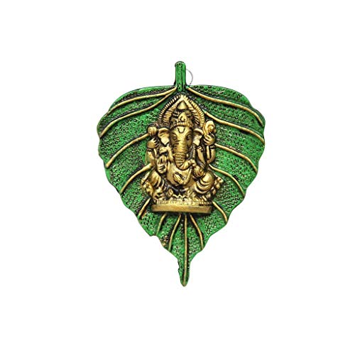 KridayKraft Ganesha Placed on Leaf Aluminium Metal Handicrafts Wall Hanging Multi Color