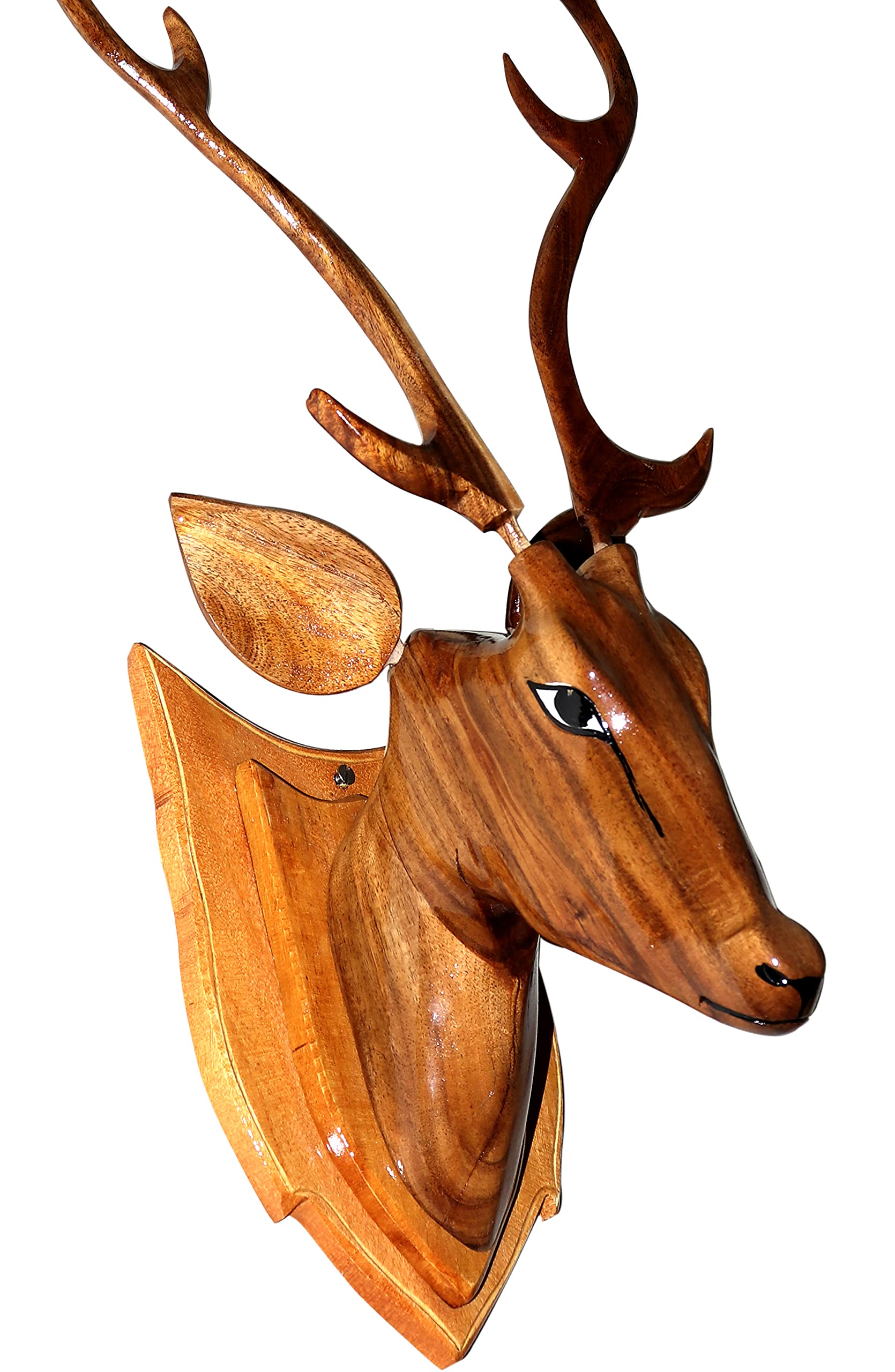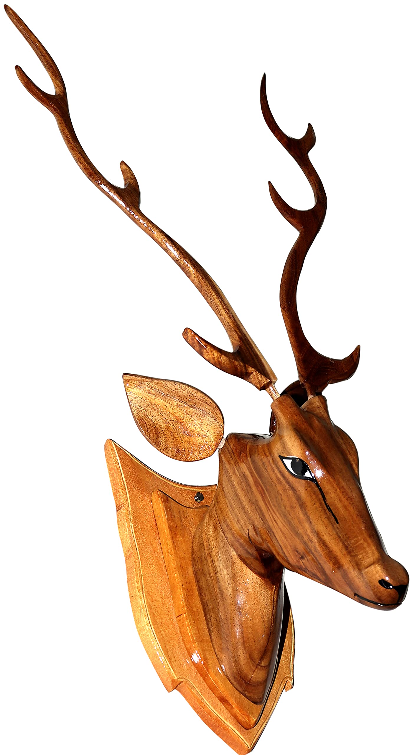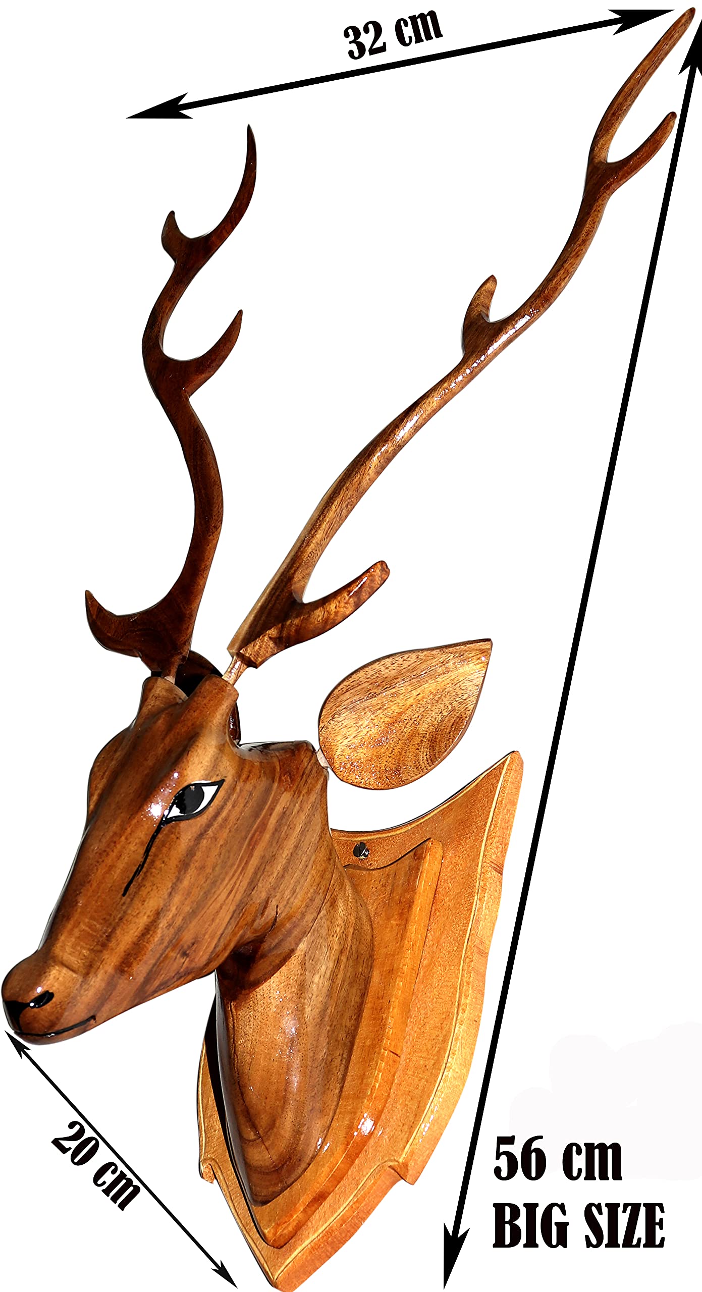 SAHARANPUR HANDICRAFTS Deer Head Long Neck Wooden Handmade Showpiece Wall Mounted and Wall Hanging Hook Home Decor B Category Clear 56cm