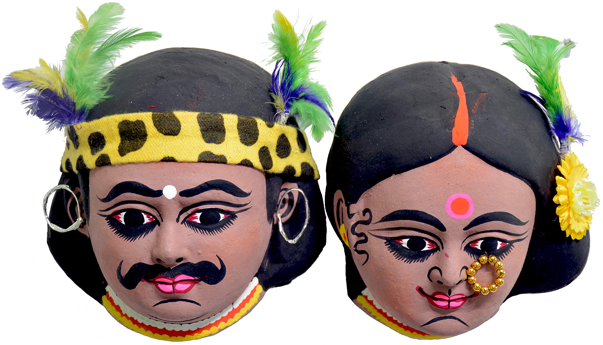 Chhau Mask is a traditional cultural heritage of Purulia in the Indian state of West Bengal. These are hand made light and lively masks showcase. There might be a slight difference in colour due to difference in lighting conditions. Will be delivered exactly what the image displays. These masks are for wall hanging decorations and not for wearing.