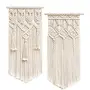 This wall hanging tapestry will decorate your sweet home or another lovely place! With this woven decoration you'll instantly add a bohemian vibe to your room an it will really warm up a space. It is great for a bedroom living area workspace or anywhere where you'd like to bring some texture and interest to your walls.. Materials: Cotton yarns and wood dowel Color: Ivory Size: Macrame 18" L X 7.5" W (from top to the ends of longest fringe). Wood dowel: 9.5" W. Package: 2 Pcs