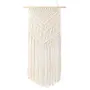 This wall hanging tapestry will decorate your sweet home or another lovely place! With this woven decoration you'll instantly add a bohemian vibe to your room an it will really warm up a space. It is great for a bedroom living area workspace or anywhere where you'd like to bring some texture and interest to your walls.. Materials: Cotton yarns and wood dowel Color: Ivory Size: Macrame 18" L X 7.5" W (from top to the ends of longest fringe). Wood dowel: 9.5" W. Package: 2 Pcs
