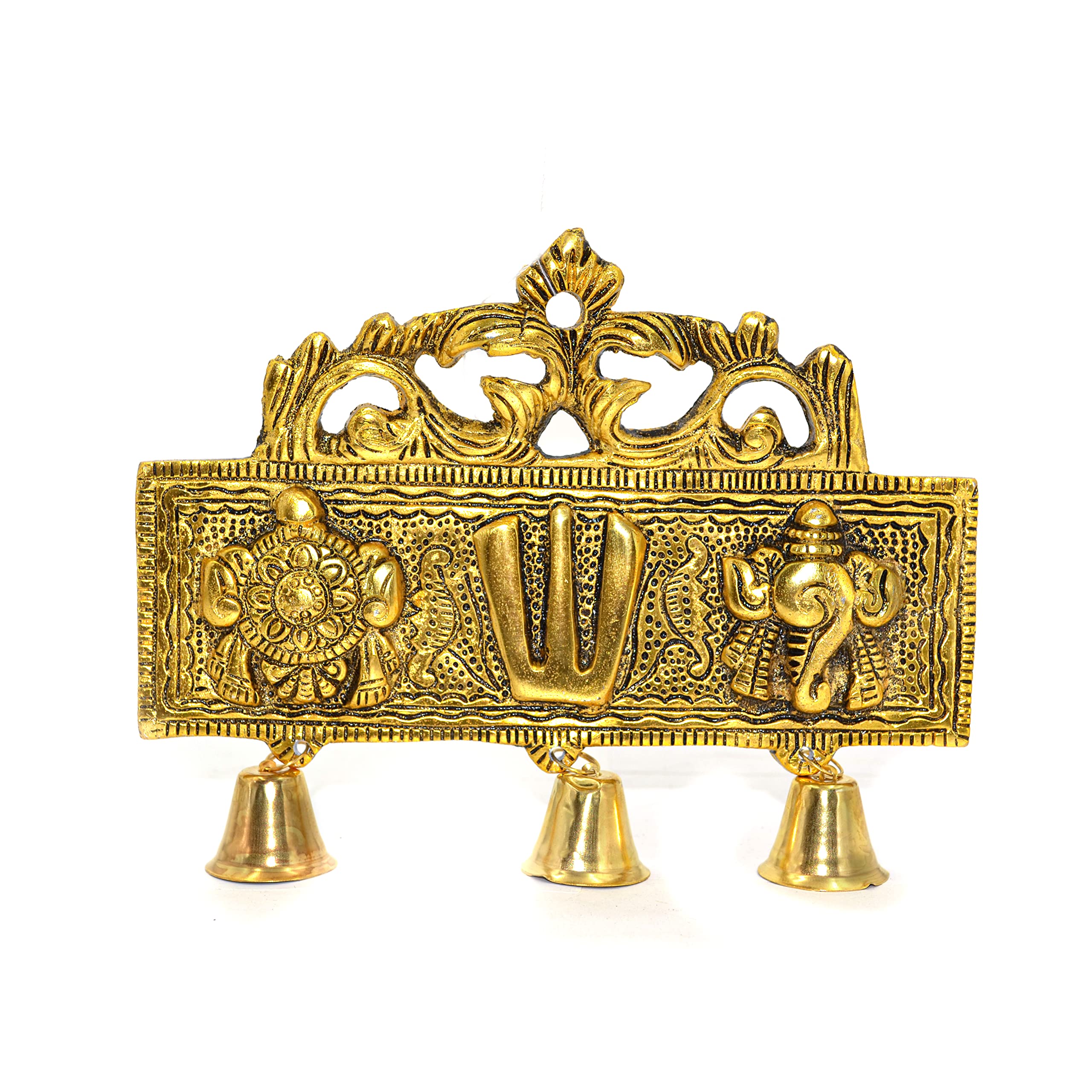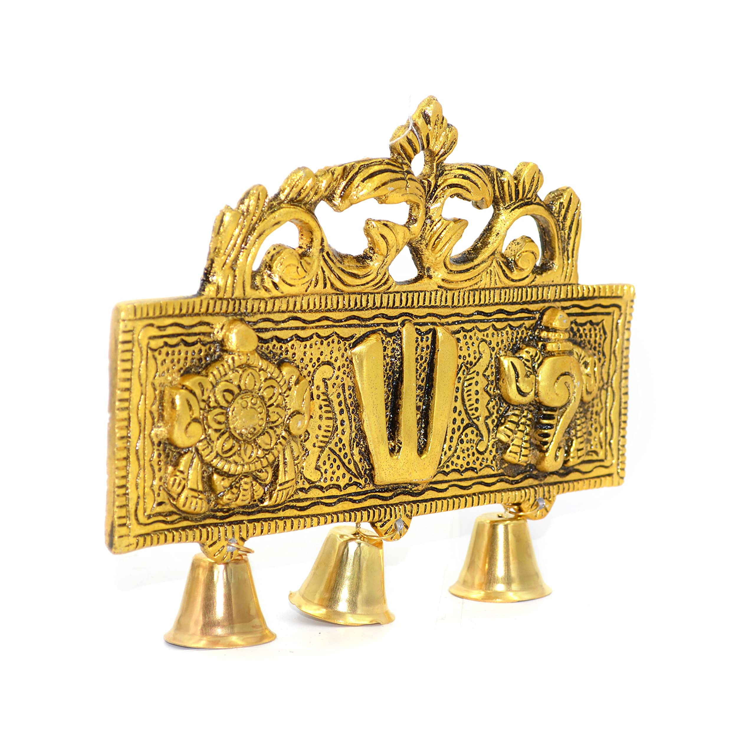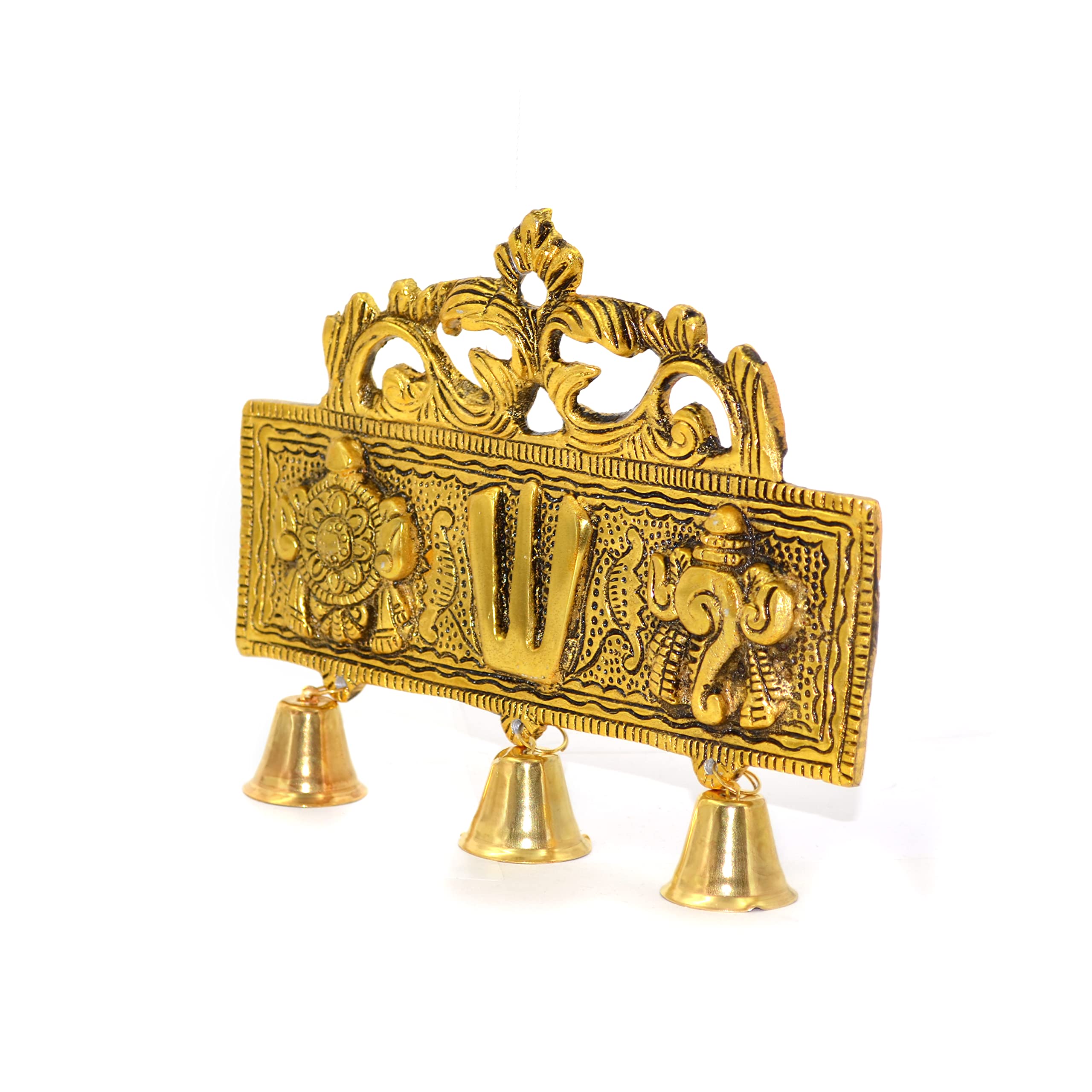 Tirupati Door Wall Hanging Shankh Chakra Namah with Bells (18 x 2.6 x 15 cm Golden) Metal (1 Pieces)