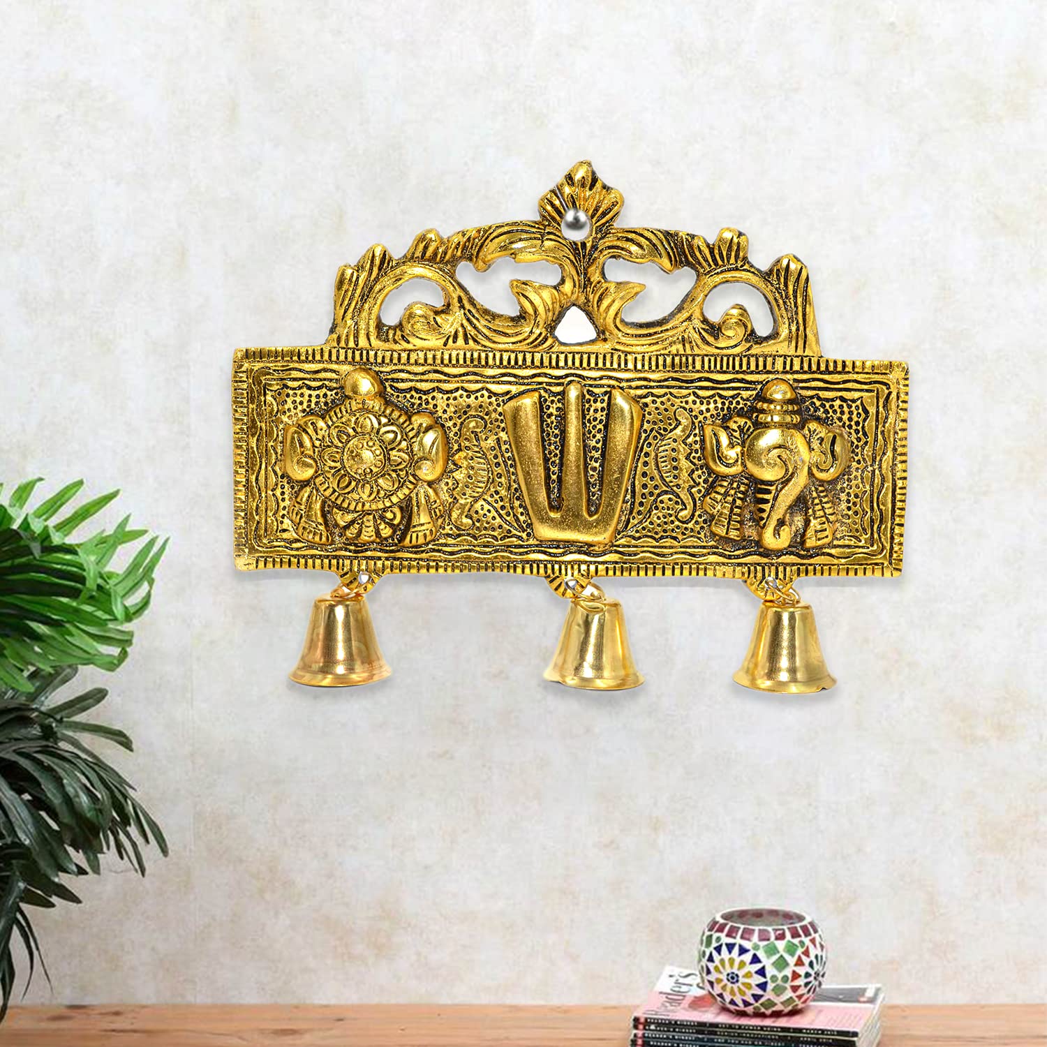 • The metallic Tirupati Shankh Chakra Namah with Bells showpiece is perfect for Door Wall Hanging.