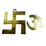 WOOD CARVING WORK BRASS SWASTIK and OMM WALL HANGING COMBO-PACK: Puri Handcrafted Golden i) SWASTIK Wall Hanging (5.5 x 5.0 inches X 175 Grams); ii) OMM Wall Hanging (3 X 3 inches X 50 Grams). Represent oneness with the Supreme and help in spiritual attainment as also bring good luck and charm to homes. Best for home puja office decoration and gift purposes the wall hangings give classic look to home decor restaurants working place etc.