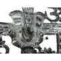 WOOD CARVING WORK handcrafted German Silver SWASTIK wall hanging with GANESH motif- best for home puja office decoration and gift purposes (8.5 x 8.5 Inches; 290 Grams).