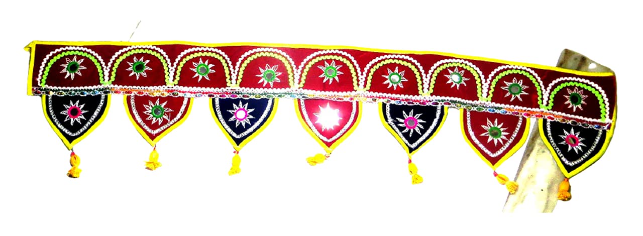 WOOD CARVING WORK Velvet Fabric Floral Designed Applique Embroidery Toran Bandarwal for Home and Mandir Decoration Main Door Hanging (Multi-Colour; Length: 90 Cms X Width: 0.5 Cms X Height: 24 Cms; Weight: 55 Grams036 inches)