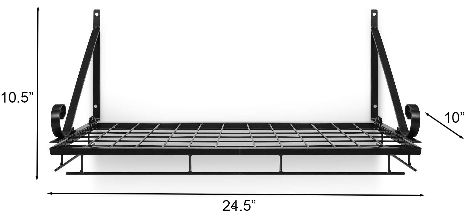 • EASY TO ASSEMBLE - Minimal assembly required with quick set-up - Support brackets can be installed to support the rack from above or below - Made of steel with powder-coated finish - Decorative frame for stylish look - Complements most light fixtures appl