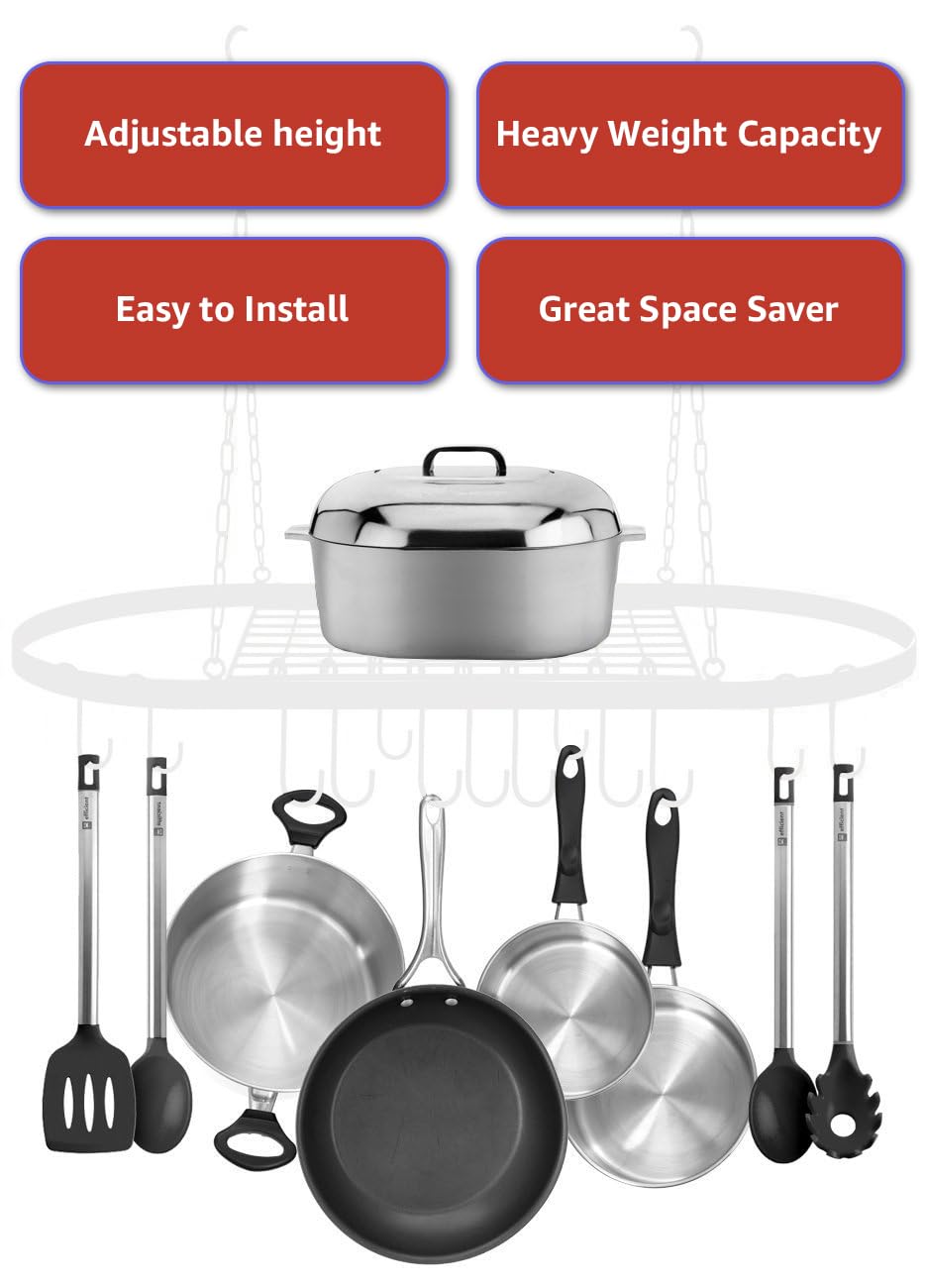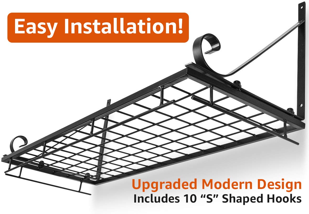 • WALL MOUNT POT RACK (BLACK) - Mounts on wall to store organize and display your cookware collection in one compact space