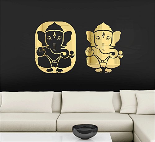 Exclusive Offer - {Get (pack of 10) 3D butterfly wall sticker with every order} - Ganesha Golden (pack of 2) 3D aCryliC stiCker 3D aCryliC stiCkers for wall 3D mirror wall stiCkers 3D aCryliC wall stiCker 3D deCorative stiCkers 3D aCryliC home wall deCor